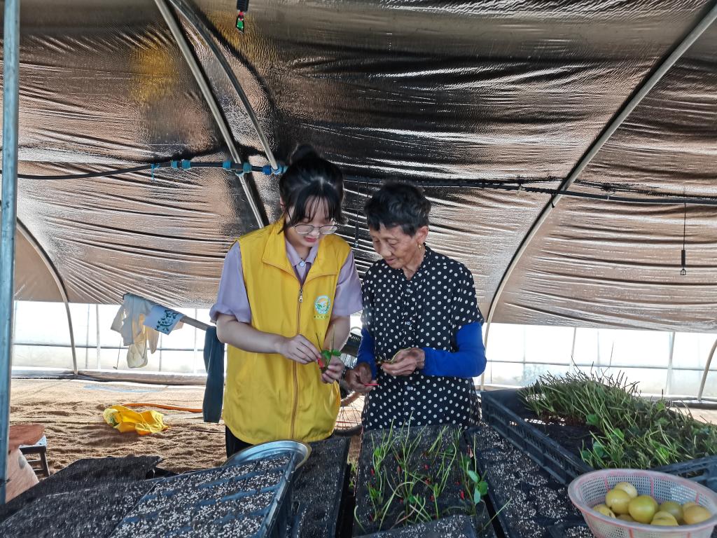 实践团成员和草莓种植户深入交流了草莓苗的扦插技术、草莓苗圃选择、草莓超高垄栽培技术管理等,并结合白兔镇草莓种植实际情况,重点讲解了草莓育苗、大棚消毒、土壤处理、果实品质提高等种植户最关心的问题。实践团成员和草莓种植户一起进行草莓苗的扦插,及时了解莓农们在草莓种植过程中出现的问题,并且针对这些问题提出了相应的解决方案。