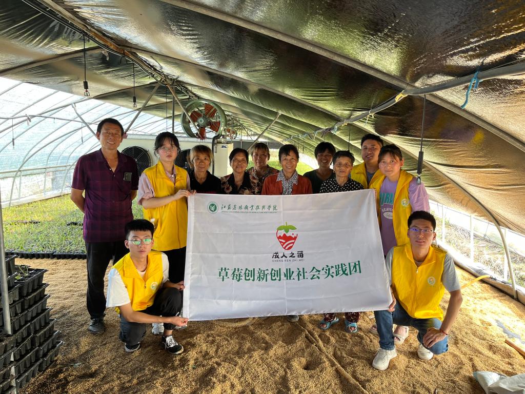 “成人之莓”草莓创新创业社会实践团来到句容市白兔镇草莓种植基地开展科技助农社会实践活动。