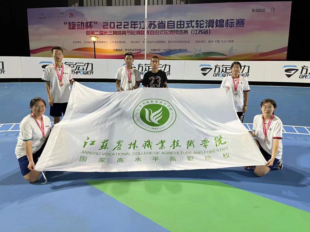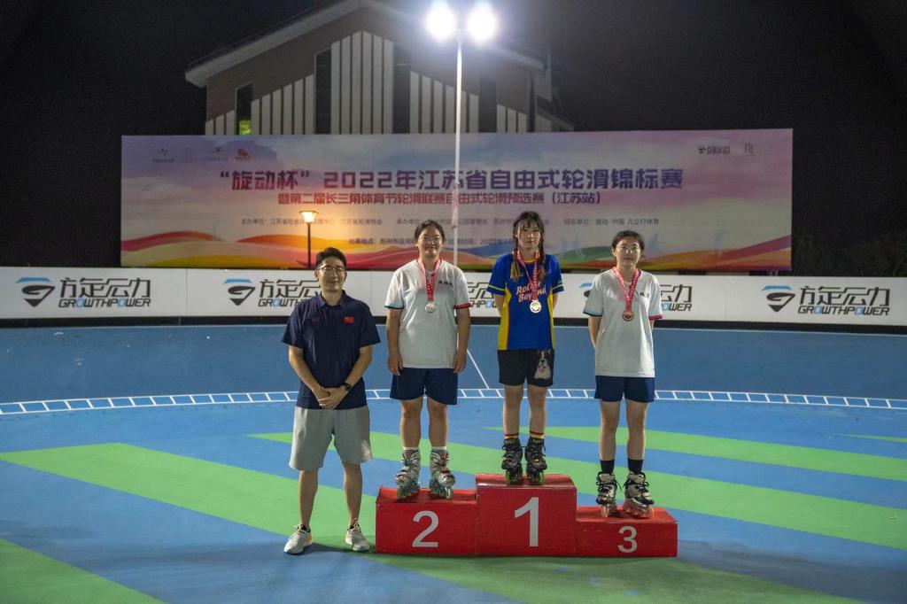 我院体育部派出轮滑运动队参赛,队员不畏强敌,敢打敢拼,陆成彤、魏洁分别获得女子速度过桩的银牌和铜牌、夏仁平获得男子速度过桩铜牌、潘建松获得男子花式绕桩铜牌的好成绩。同时轮滑社团社长的陆成彤同学以优异的女子速度过桩成绩晋级全国长三角轮滑联赛,将代表江苏队参加此项赛事。
