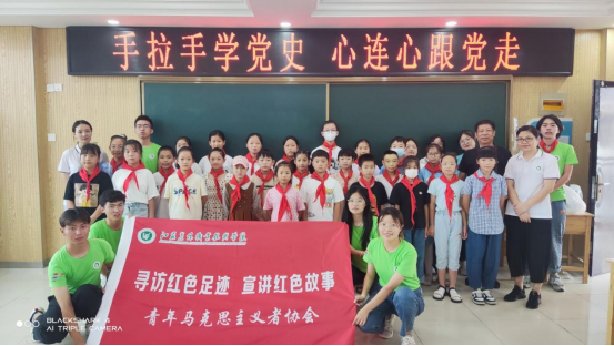 青马协会大学生宣讲团在指导老师的带领下走进句容市天王镇中心小学,为当地小学生开展红色故事宣讲活动。
