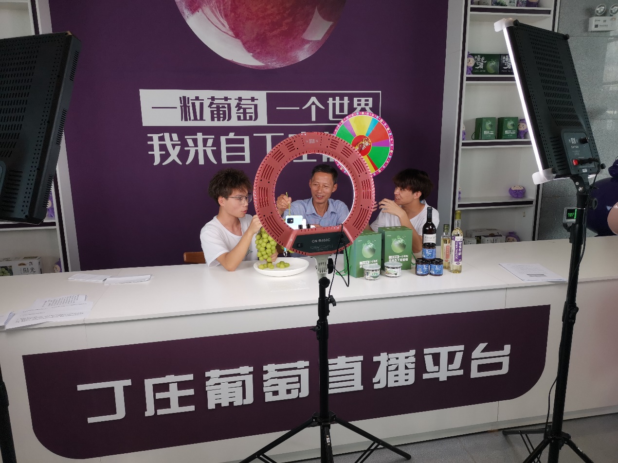 教工第二党支部联合学生党支部通过“亚夫科技服务”团队,主动对接句容市茅山镇丁庄葡萄合作联社、丁庄葡萄分拣中心、甜静家庭农场等经营主体,开展“丁庄葡萄产业新零售技术服务模式示范与推广”活动,共建“葡萄新零售技术培训基地”,运用新零售技术帮助农户搭建线上网店,进行农产品短视频及直播推介,拓宽新零售销售渠道,打造农产品零售“新业态”。师生团队通过拼多多、淘宝、微信小程序等多元化平台,每天以巨峰、夏黑、阳光玫瑰等主打品种完成1-2场在线直播销售活动,目前已累计直播100余场,帮助农户增收100余万元。