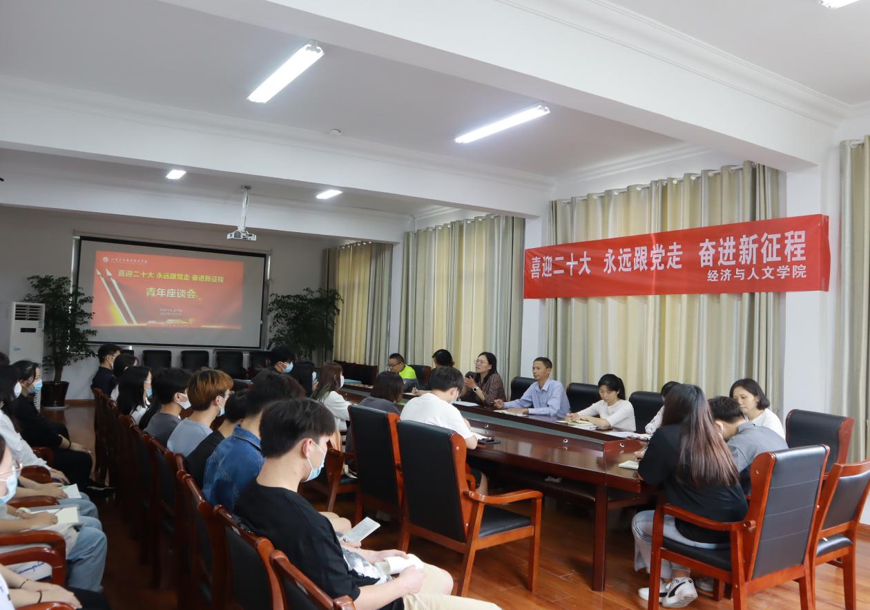 在经文楼201会议室召开“喜迎二十大、永远跟党走、奋进新征程”青年座谈会。