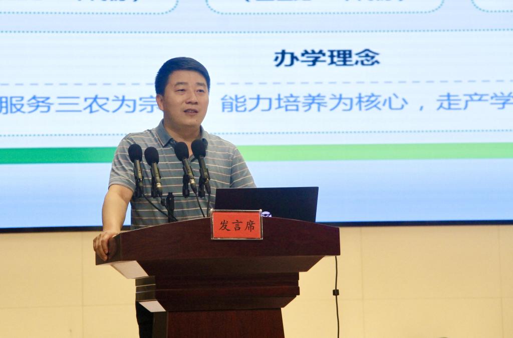 院长颜志明从专业设置、师资队伍、实训条件、科技创新及创新创业等五方面对色花堂