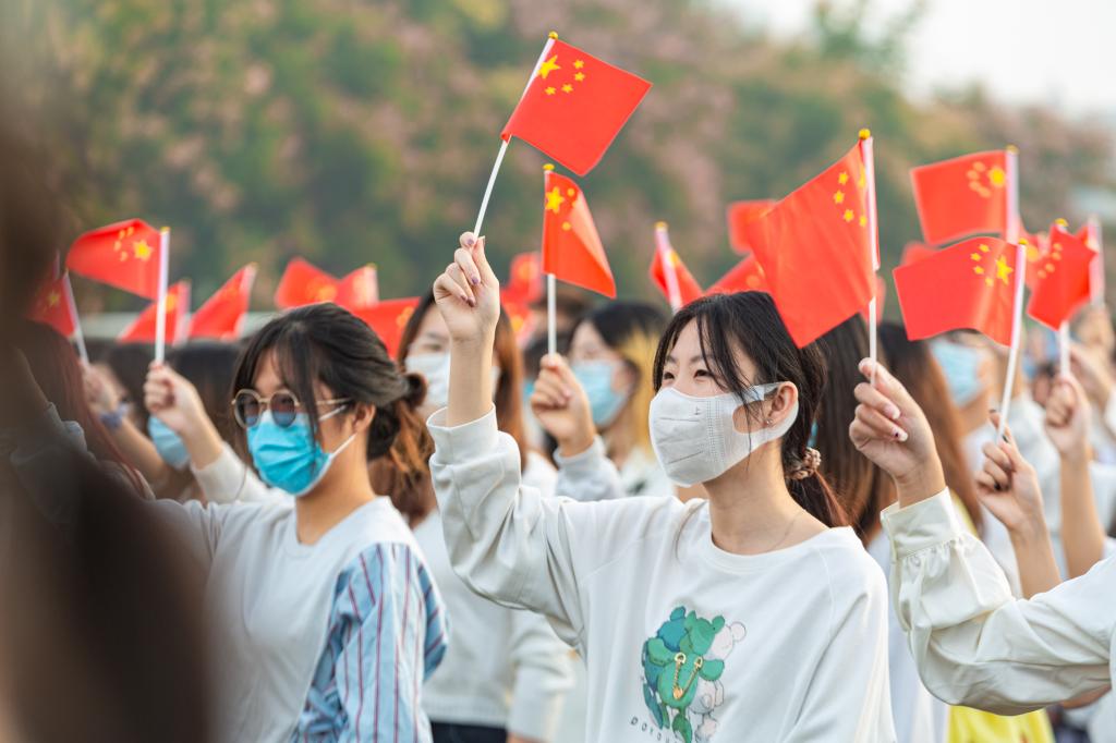 迎着初升的太阳,国旗护卫队精神抖擞,迈着铿锵有力的步伐护卫国旗入场,鲜艳的五星红旗在全体师生的注目中冉冉升起、迎风飘扬。参加活动的师生高唱国歌,表达对祖国母亲生日的祝福。全国农业职业技能大赛新城疫抗体水平测定一等奖获奖选手胡特翰发言,他勉励大家要珍惜时光、刻苦学习、勇于创造、不懈奋斗。马克思主义色花堂
