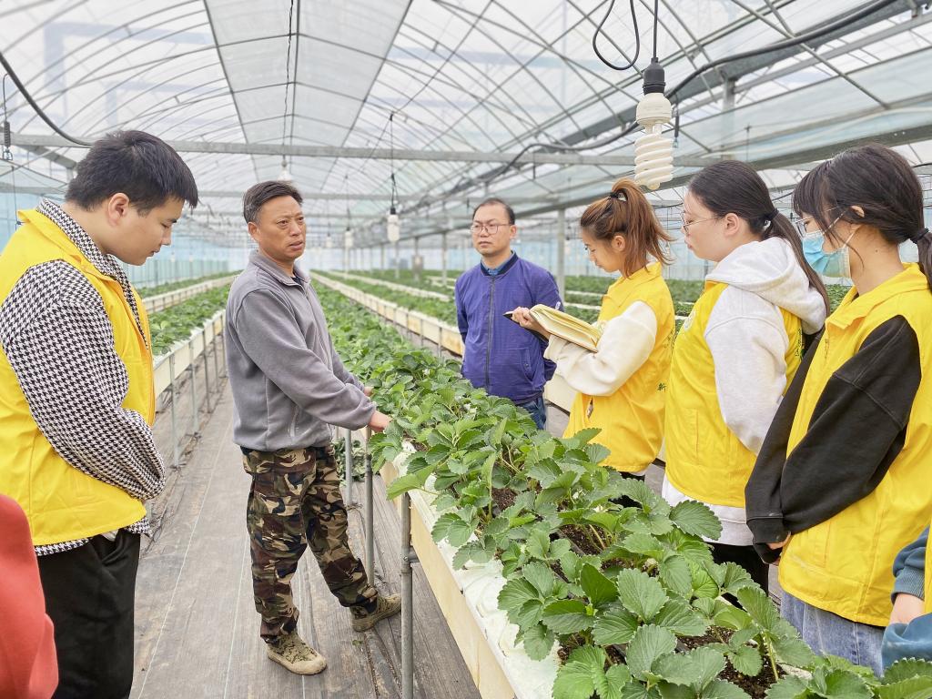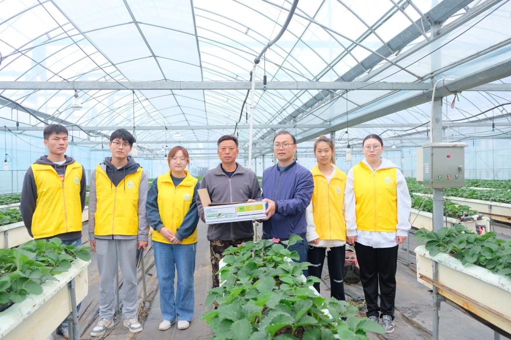 党总支副书记王全智老师带领“新禾助农服务团”学生来到白兔镇全国劳模草莓示范基地开展了“青春助农促生产,乡村振兴携手行”实践活动。
