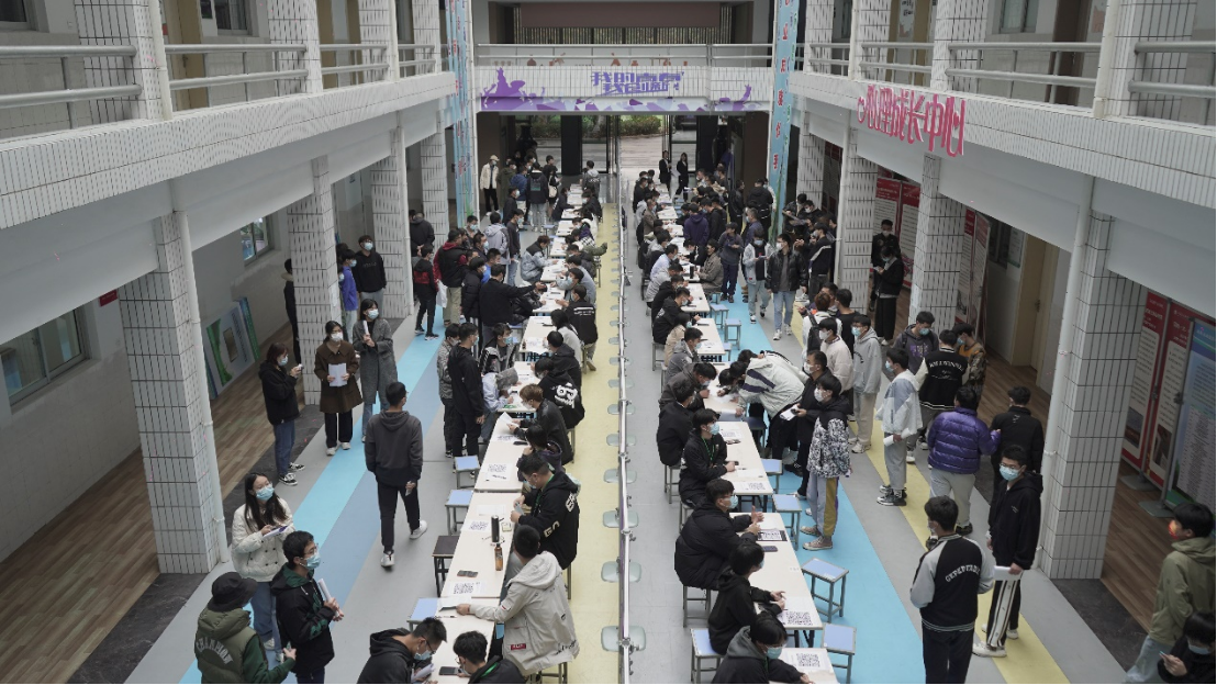 招聘会现场秩序井然,500多名毕业生到场参会,结合自身优势和就业意向,通过二维码向心仪单位投递应聘简历并进行线上面试,部分毕业生已与用人单位达成初步就业意向。