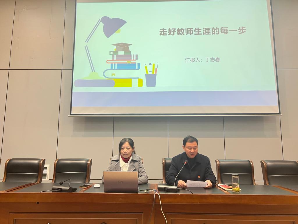丁志春以《走好教师生涯的每一步》为题,讲述自己执教22年来是如何努力在工作和学习中思变走出困惑与迷茫,积极践行立德树人使命,朝着人生理想奋进的心路历程。报告生动精彩,在场的教职工深受感动。
