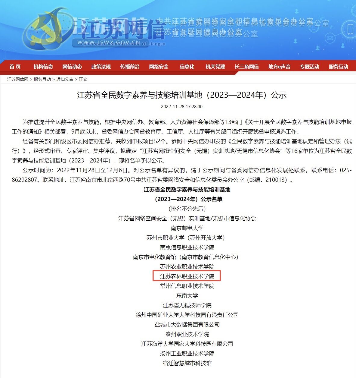 为推进提升全民数字素养与技能,根据中央网信办、教育部、人力资源社会保障部等13部门《关于开展全民数字素养与技能培训基地申报工作的通知》相关部署,由信息工程色花堂 牵头提交的《数字新农人》项目脱颖而出,2022年12月我院成功入选江苏省全民数字素养与技能培训基地。