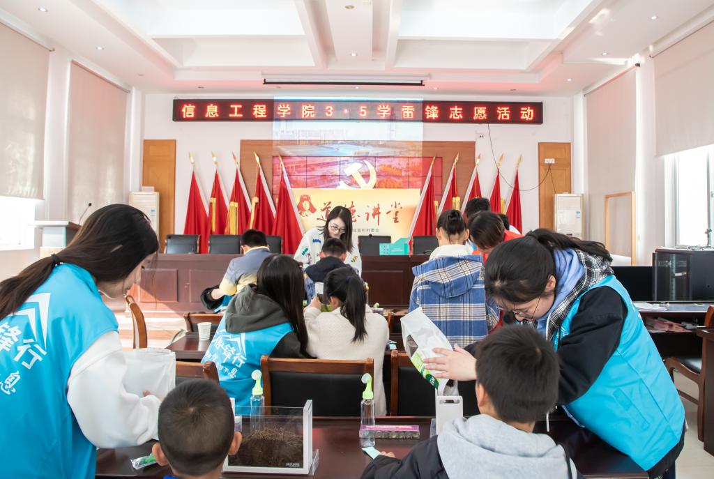 团委E信锋行志愿者协会“向阳花”假日课堂服务队组织7名师生志愿者赴城盖村开展智慧农业科普小课堂学雷锋活动。