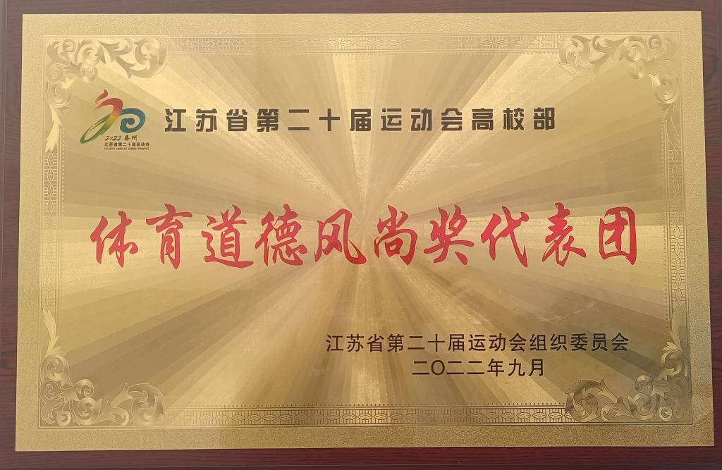 3月3日,在江苏省第二十届运动会高校部竞赛工作总结表彰大会上,我院获得江苏省第二十届运动会高校部(乙组)“优秀组织奖”和“体育道德风尚奖”。