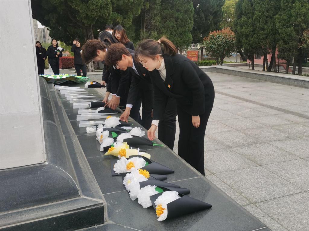 的党员师生们利用业余时间亲自制作了手折纸花献给革命先烈。参加活动的全体党员和学生怀着对革命先烈无比的敬意和无限的哀思,瞻仰了革命烈士纪念碑和巫恒通、郭纲琳等烈士的墓碑,在碑前大家集体默哀,表达对革命先辈的崇高敬意和深切缅怀。