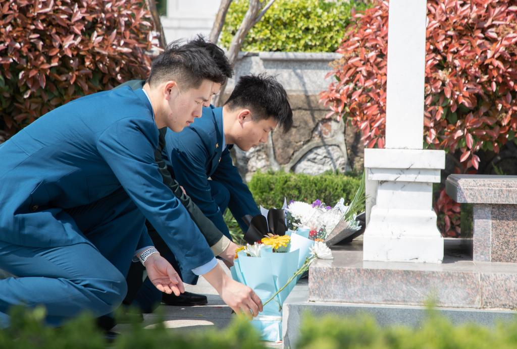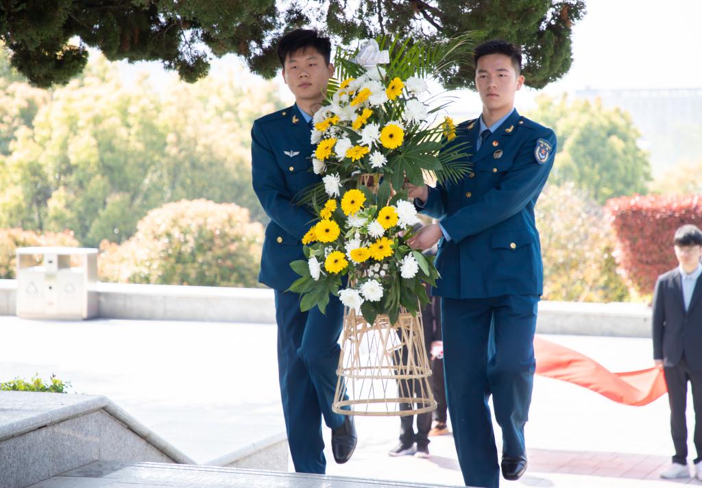 青山铸忠魂,鲜花祭英烈。在烈士纪念碑前,全体师生高唱国歌,用满腔激情表达对祖国的深深爱意。随后,在庄严肃穆中,静立默哀,全体师生深切缅怀在革命战争年代英勇献身的先烈们。两名退役士兵学生代表稳稳抬起花篮,缓步走向纪念碑,向革命烈士纪念碑敬献花篮。师生党员重温入党誓词,进一步坚定理想信念。