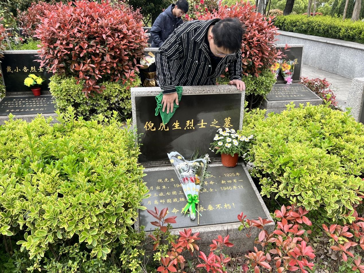 青年团员代表在句容兆文山烈士陵园开展“缅怀革命先烈 赓续红色血脉”清明祭扫活动。