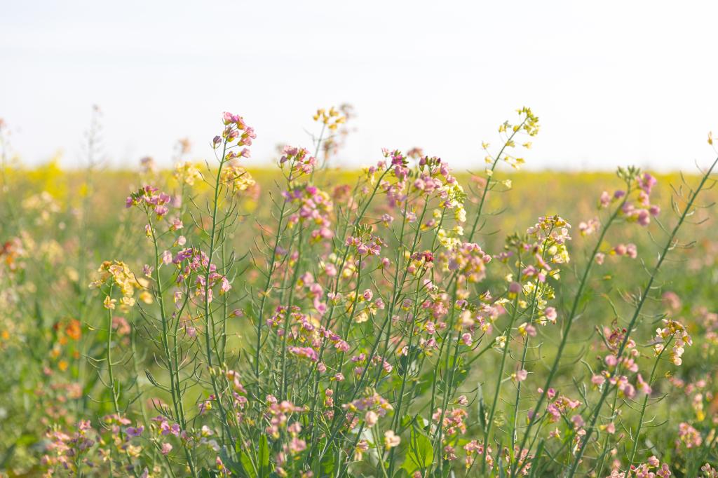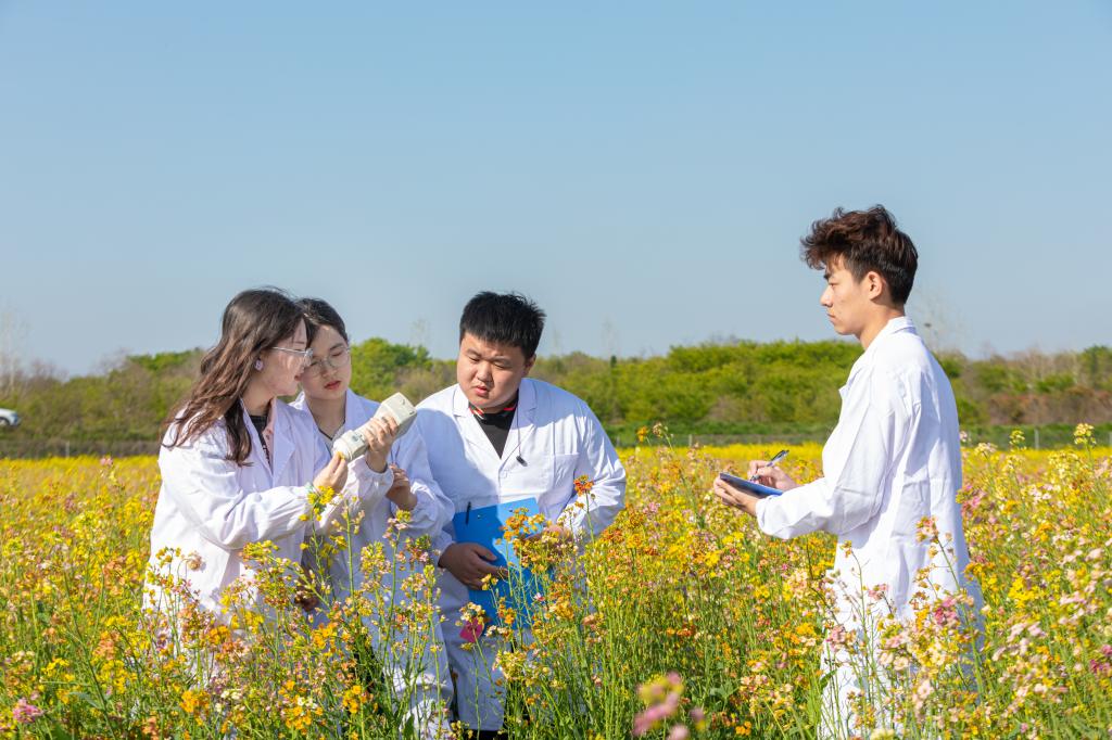 绿色防控团队的师生们走进李家桥村多彩花田,穿梭在花丛中,取样、测色、记录、杂交、套袋,白色的身影和七彩油菜花交相辉映,形成一道亮丽的风景线。