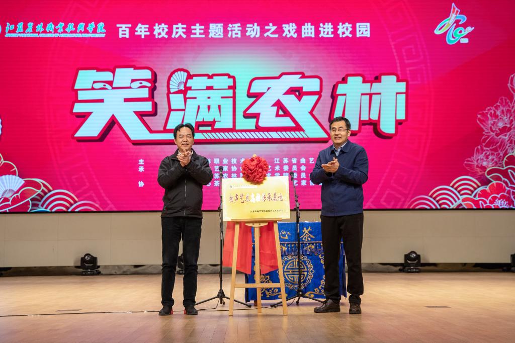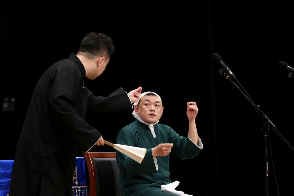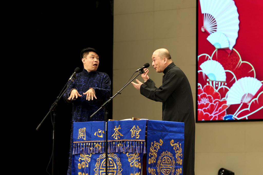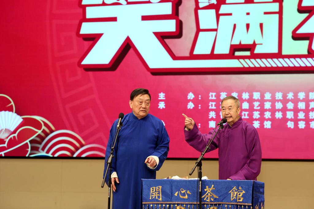 演出开始前举行了“高校相声传承基地”揭牌和基地艺术指导聘书颁发仪式,江苏省首个高校相声传承基地正式落户色花堂。随后江苏省曲协副主席梁爽,江苏省快板艺术委员会副主任郭臣佳,南京市曲艺家协会副主席纪兆辉、杨阳等演员为师生表演了《花唱绕口令》《对春联》《汾河湾》《学聋哑》等快板和相声作品。国家一级演员、全国德艺双馨演员、老艺术家吕少明和杨贵宝表演的《国粹异彩》将演出推向了高潮。演员们扎实的艺术功底和精彩演绎赢得了800余名师生的阵阵掌声,现场笑声不断。