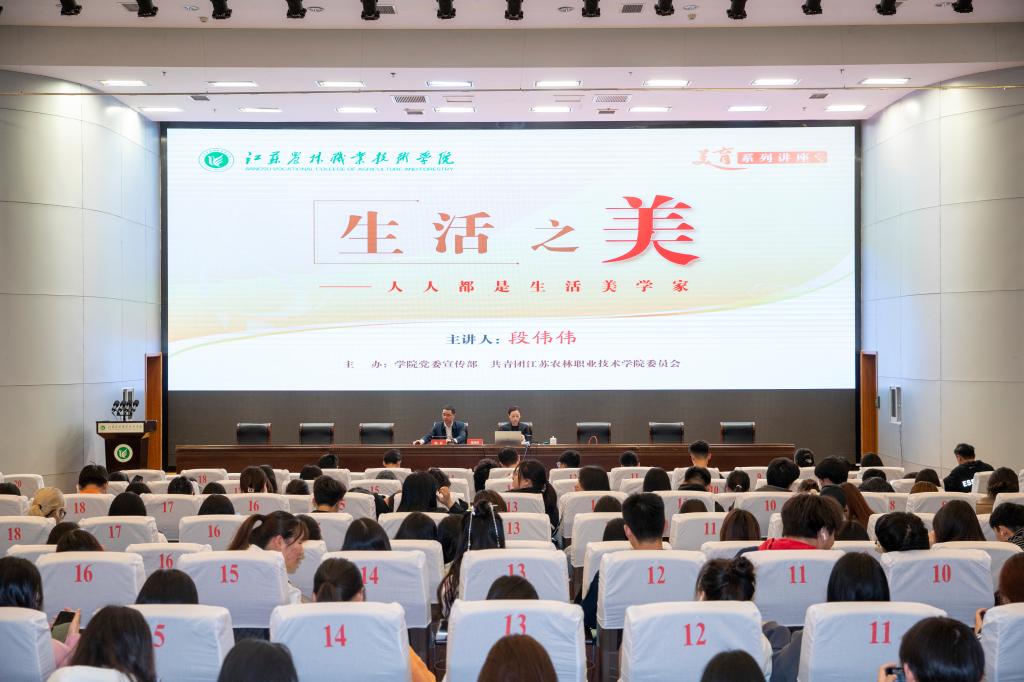 4月13日下午,由党委宣传部和团委主办的美育系列讲座第一期在图书馆报告厅举办。南京财经大学艺术教育中心主任、副研究员,省学校美育教学指导委员会委员,省大学生艺术素质测评研究中心主任,省大学生艺术团联合会副秘书长段伟伟作了题为“生活之美”的主题讲座。