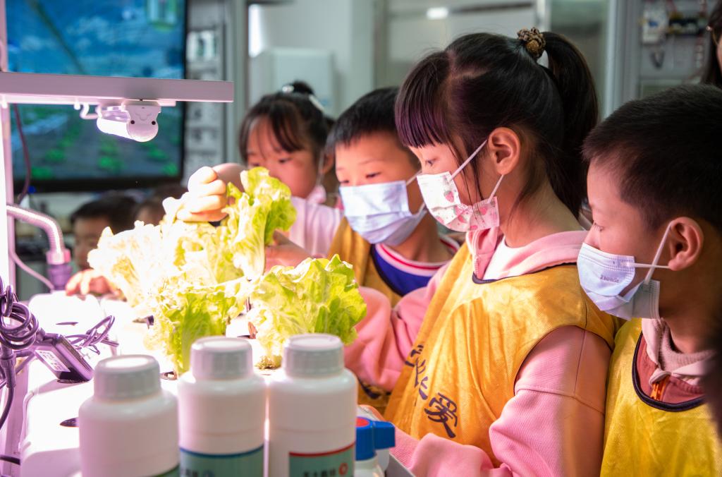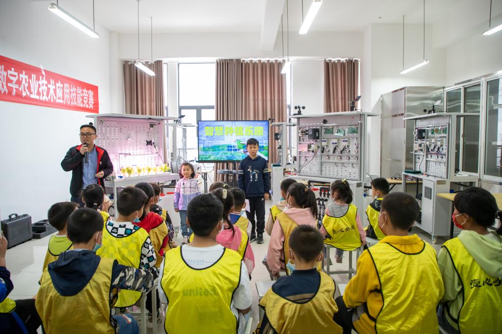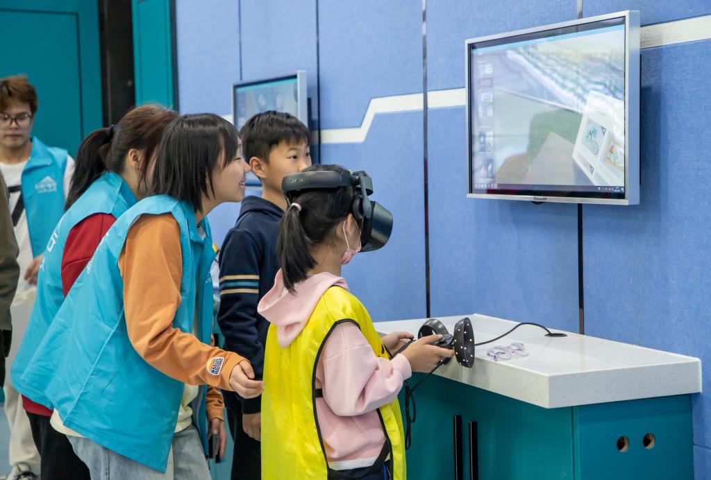 随后,志愿者带领小朋友们参观农业物联网创新工作室,动手操作智慧农业人才培训系统,认识和了解到农业生产中的新科技。在虚拟仿真中心,大学生志愿者将课堂变成“田间地头”,带领小朋友“沉浸式”体验虚拟世界里“种菜”。小朋友们身临其境秒变“小农人”,近距离感受智慧农业的神奇魅力。