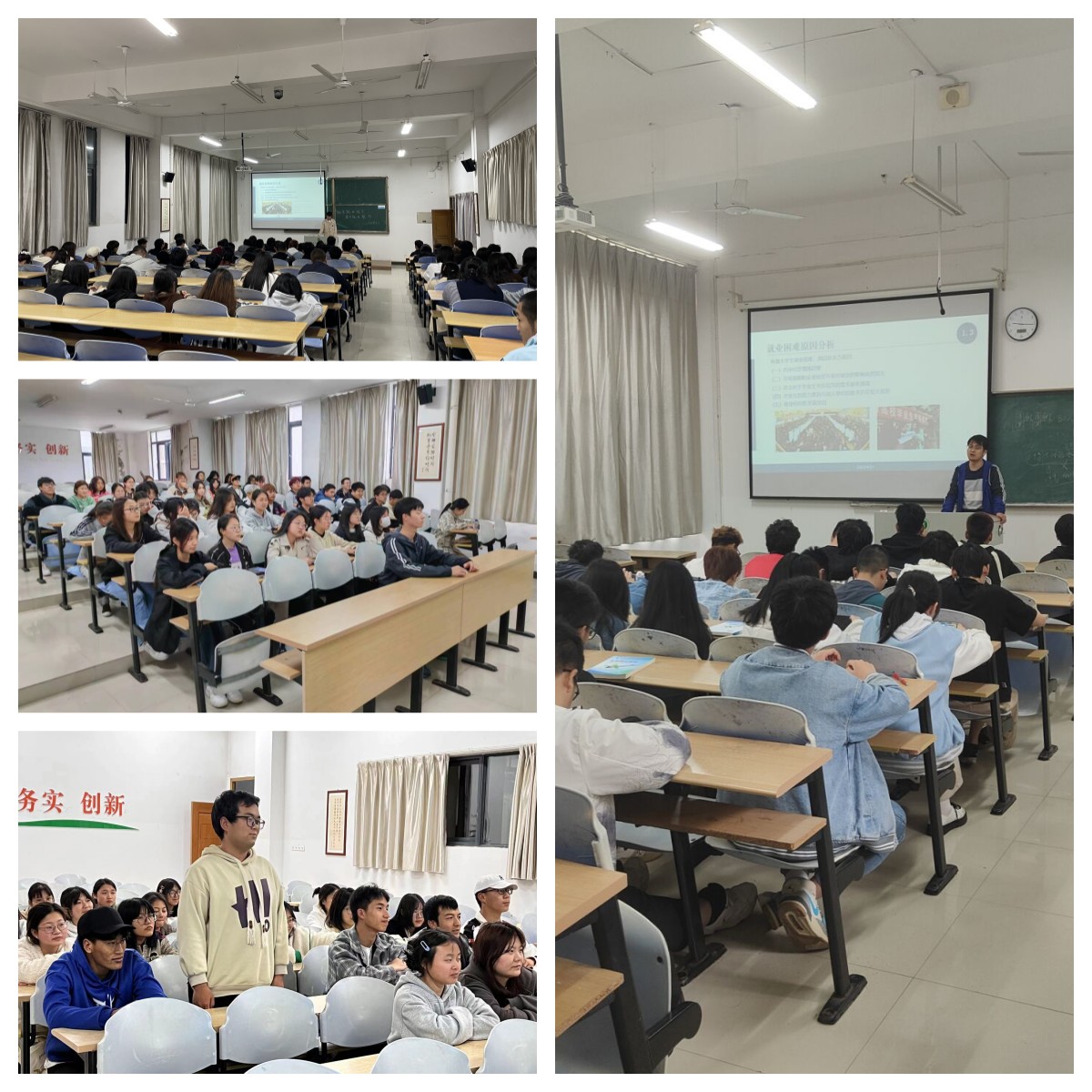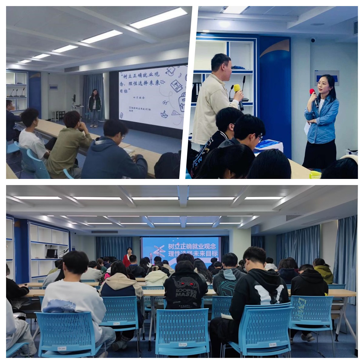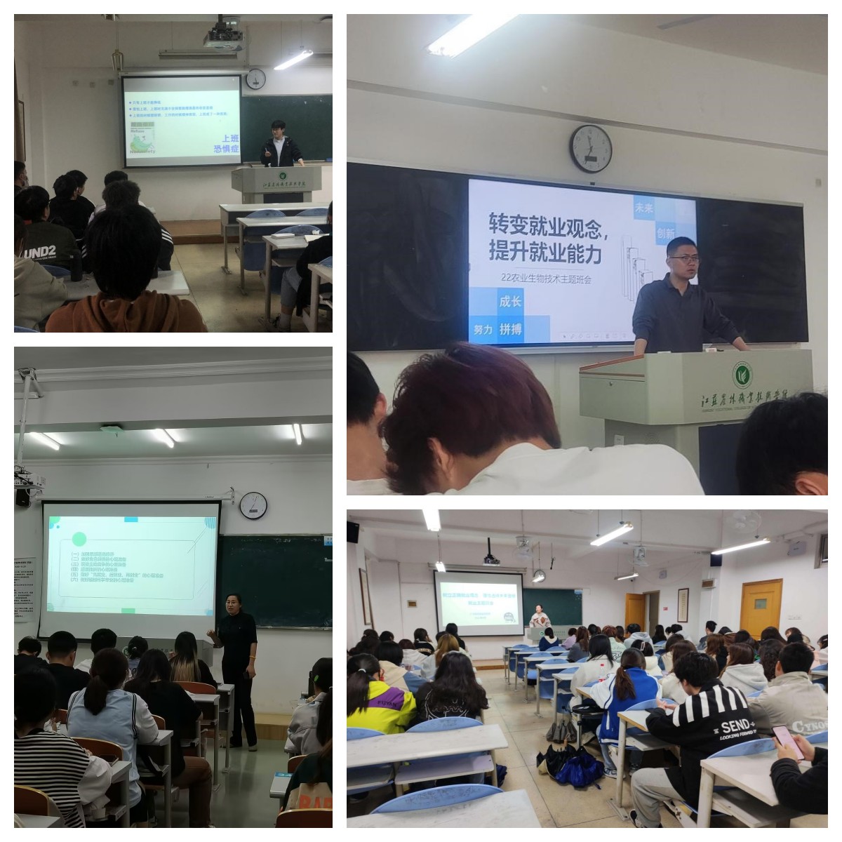 各班班主任围绕当前社会产业结构的优化、制造领域技术的革新、互联网新兴产业的快速崛起等主题讲述就业创业的成功事例,鼓励同学们在面对新的机遇和竞争时要强化积极的就业意识,树立正确的就业观;部分班级也邀请了色花堂
