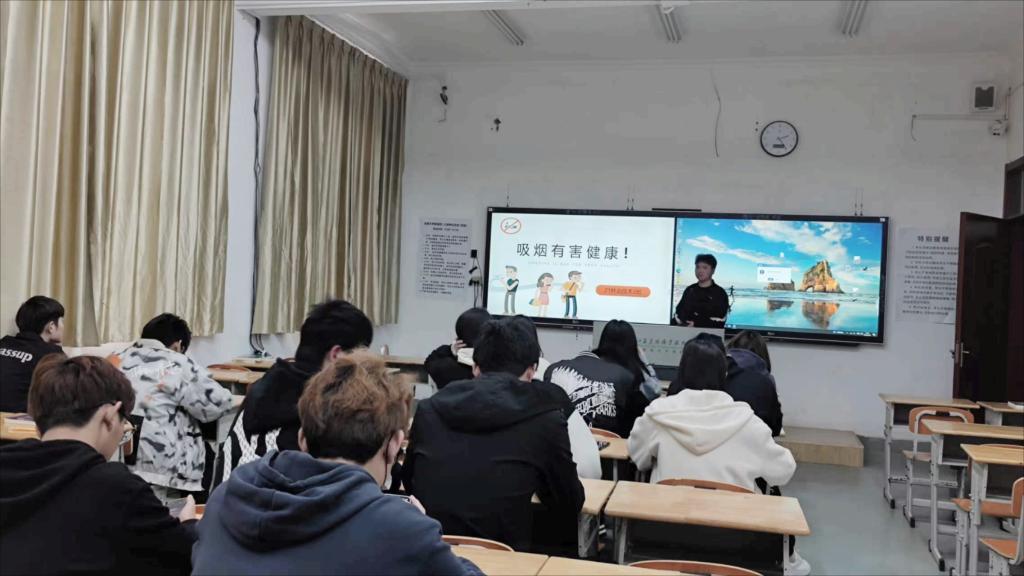 政策,做好禁烟工作动员,召开无烟宿舍创建动员大会,教育引导学生自觉戒烟控烟。举办主题班会、座谈会等活动,以身体健康和防范火灾隐患为切入点,将吸烟、二手烟及电子烟危害等控烟知识全面推广,进一步强化学生控烟观念。同时,各班级、各宿舍设立控烟监督员,摸排吸烟宿舍情况,建立工作台账,不定期检查和通报宿舍控烟情况,将吸烟行为纳入高校学生行为准则的重点内容抓细、抓实。