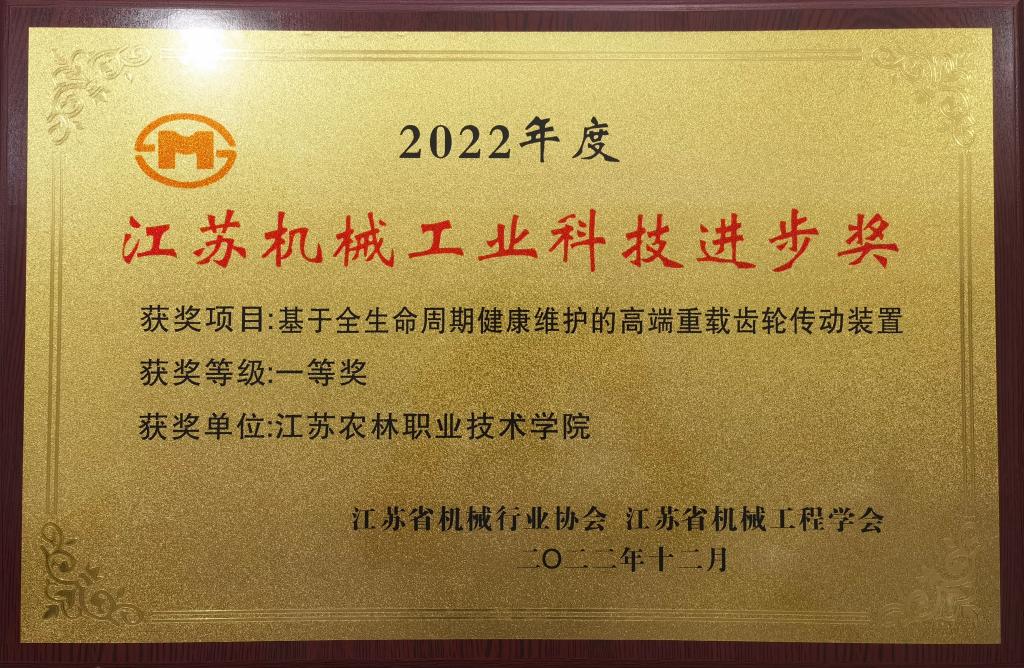 联合南京农业大学、南京创力传动机械有限公司共同完成的“基于全生命周期健康维护的高端重载齿轮传动装置”项目荣获江苏机械工业科技进步奖一等奖,这也是色花堂