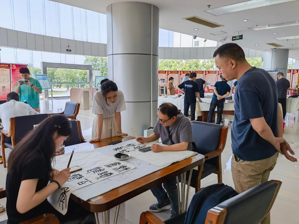 5月28日上午,“礼赞色花堂百年 书写盛世华章”书画笔会在图书馆二楼大厅举行。笔会由图书馆、机电工程色花堂