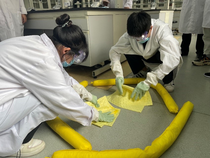整个演练过程按照应急处置流程,有步骤、有秩序地进行,呈现了一套完整的危化品撒漏应急处置方案。此次演练提高了师生的实验室安全意识,增强了应对实验室突发安全事故的应急处置能力,掌握了应急救援和个人防护用品的正确使用方法。今后,我们将继续开展结合专业特点的实验室安全应急演练,逐步实现应急演练常态化。