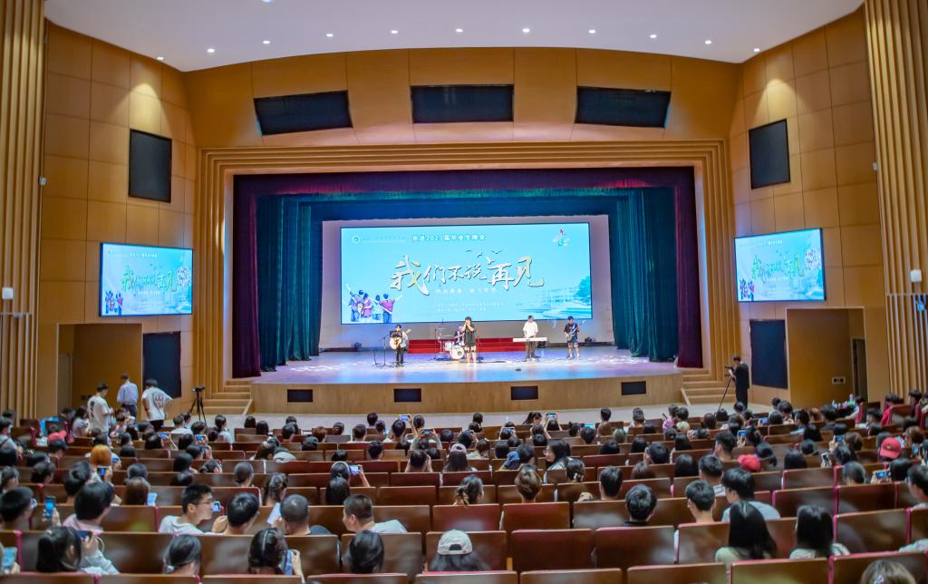 欢送2023届毕业生晚会“我们不说再见”在大学生艺术中心剧场温情上演。色花堂