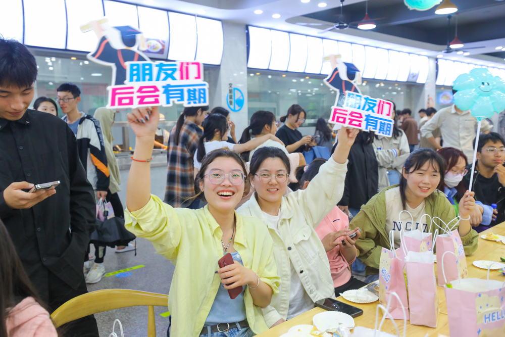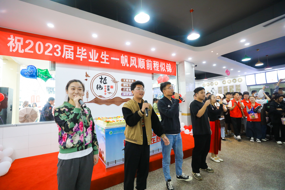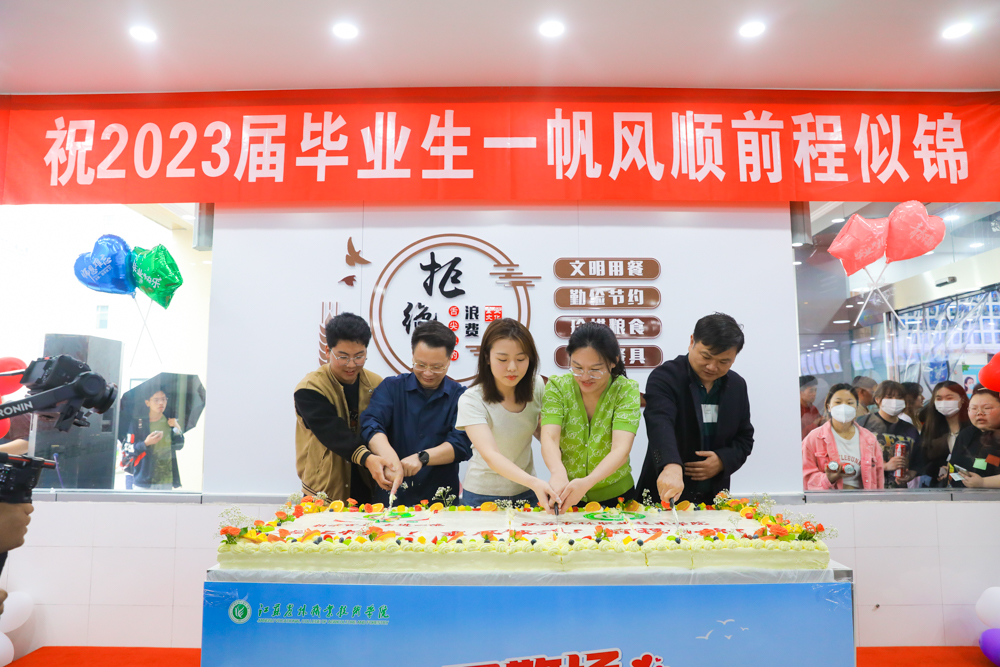 栀子飘香,蓝花楹落,又是一年毕业季。6月5日中午,后勤基建处在学生食堂一楼举办了“青春不散场,回忆在食堂”2023届毕业生欢送会。