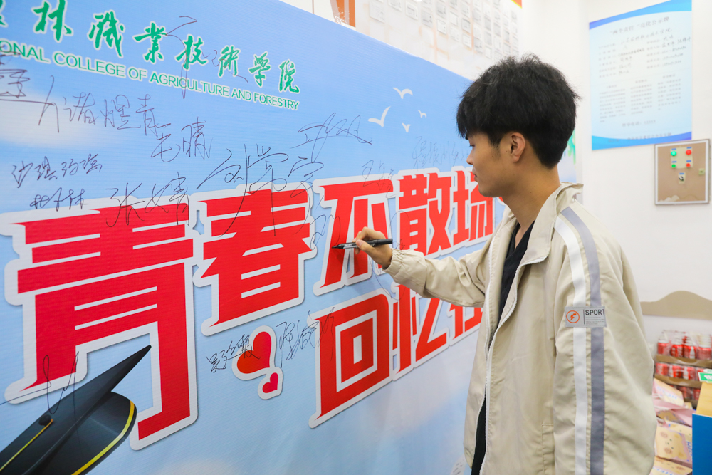 活动还设计了签名墙,毕业歌会等环节,毕业季签名墙,留住美好时光;毕业歌曲掌声不断,台上的同学合着节拍、放声歌唱,台下的同学们挥舞手臂、激情澎湃。