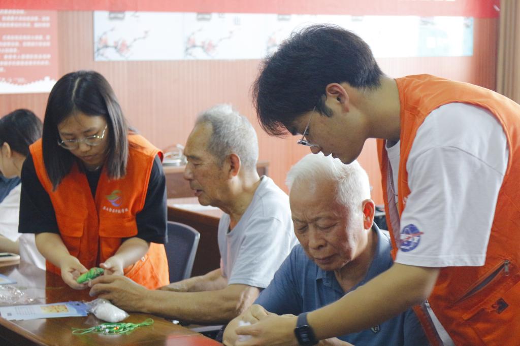 食品营养与检测专业的师生们运用专业知识,为老人们带来了一场老年人营养与膳食健康讲座,从合理膳食的含义、中国老年人膳食指南、合理膳食的搭配、健康的饮食习惯等四个方面详细讲解了老年人营养与膳食的健康知识,帮助老年人更好地做到合理膳食、均衡营养,减少和延缓疾病的发生和发展。同学们还为“高血压、高血糖、高血脂”病症的老人设计了科学膳食指南宣传单,制作针对听力下降和高血糖人群的“莴笋鲜虾饼”和“香菇冬瓜汤”,通过现场宣传、指导、试吃等,帮助老年人养成科学的饮食习惯。活动最后,同学们还和老人们一起制作艾草香囊和粽子,共度端午佳节。