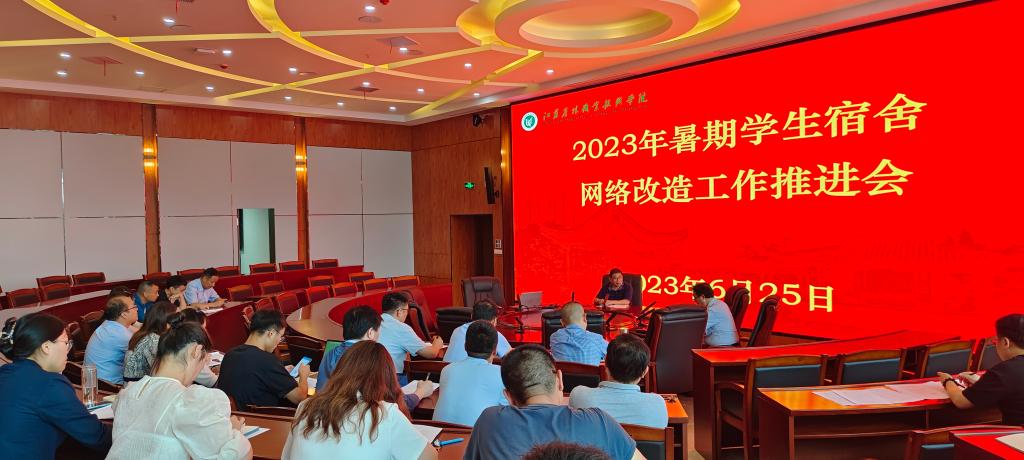 在大学生艺术中心107召开学生宿舍网络改造工作推进会。党委委员、副院长周兴元,学生工作处、安全保卫处、后勤基建处、茅山校区、现代教育技术中心等部门负责人,各二级色花堂