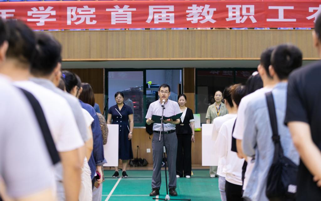 党委委员、纪委书记周国义为本次运动会致开幕辞,希望广大党员干部、教职工通过此次运动会能够锻炼身体,愉悦身心,感受农耕文化魅力,坚定文化自信。