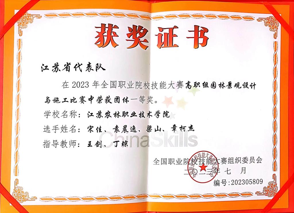 王剑、丁琼两位老师指导的园林技术专业宋佳、袁晨逸、梁山、章柯杰四位同学,凭借扎实的专业知识和实践技能,荣获大赛一等奖第二名的好成绩。