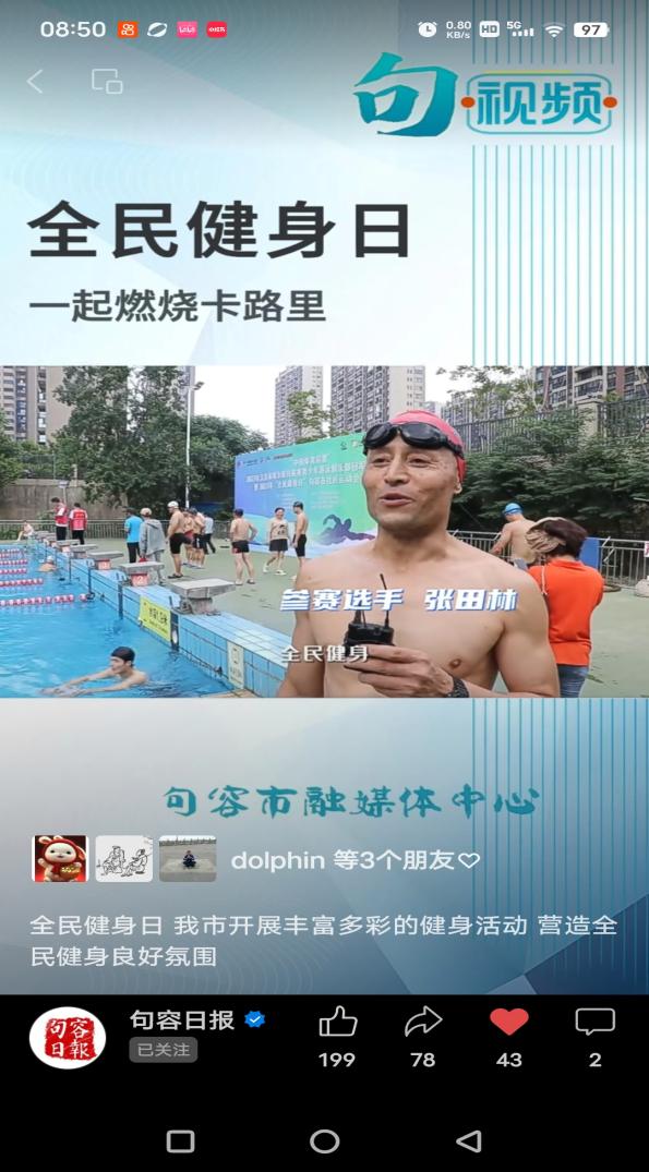 我院积极参与全民健身活动,句容市融媒体中心对我院游泳队张田林老师进行了采访。