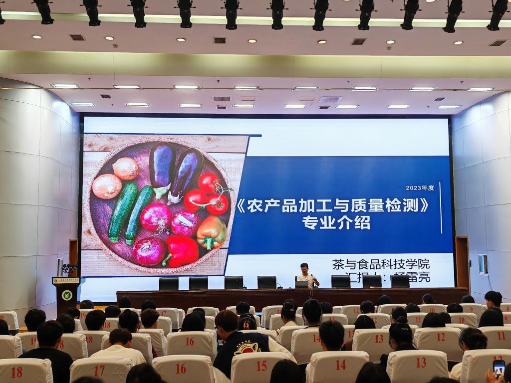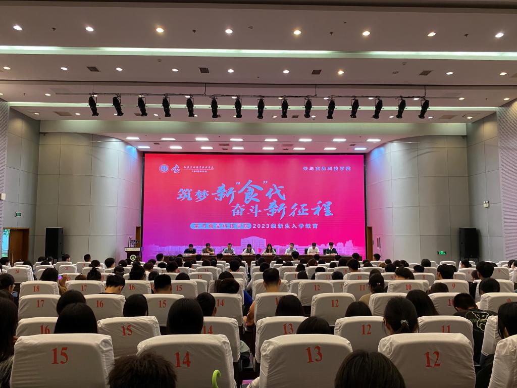 在图书馆报告厅隆重举行“筑梦新‘食’代,奋斗新征程”2023级新生入学教育。茶与食品科技色花堂