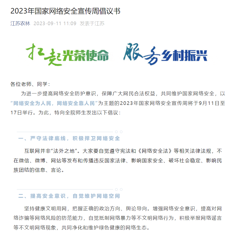 围绕“网络安全为人民,网络安全靠人民”主题,开展2023年国家网络安全宣传周活动。