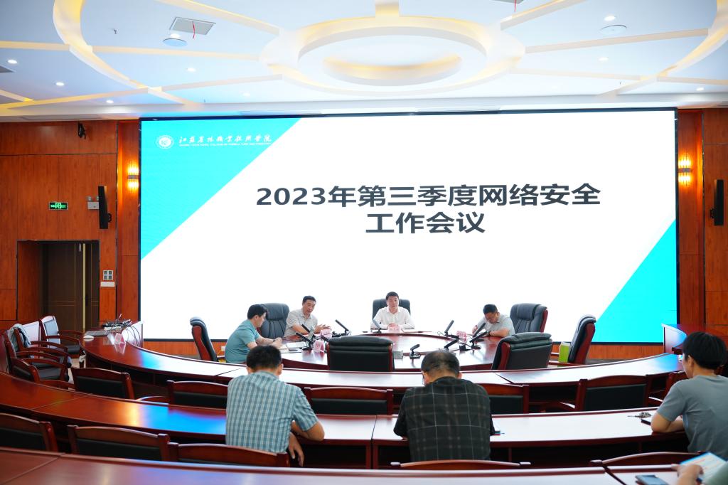 第三季度网络与信息安全工作总体情况,通报了智慧大脑数据对接进展、学生宿舍网络改造工作进展,详细介绍了网络安全宣传周活动方案,同时部署了下一阶段网络安全工作安排。