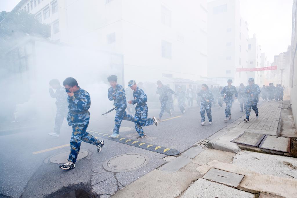 疏散演练以学生宿舍为模拟起火地点,随着烟雾升起、警报响起,参加演练的同学们弯腰低头、捂住口鼻,快速地沿着疏散楼梯依次、有序、快速撤离到指定疏散地点。整个疏散过程中,全体学生反应敏捷、行动迅速规范、撤离井然有序,未出现人员聚集踩踏情况,本部及茅山校区消防疏散演练用时均在5分钟以内,疏散学生共4000余人。