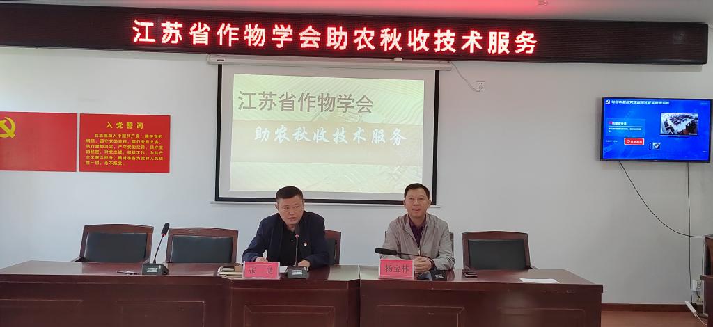 10月20日下午,江苏省作物学会组织科技服务团赴句容市边城镇佴池村开展“粮食作物秋收秋种及农产品安全生产技术培训”活动。来自边城镇佴池村的种粮大户、农民专业合作社等新型农业经营主体代表50余人参加了活动。江苏省作物学会秘书长杨宝林出席了活动。
