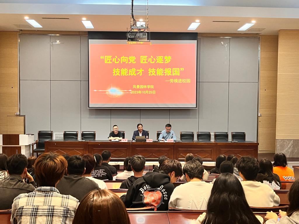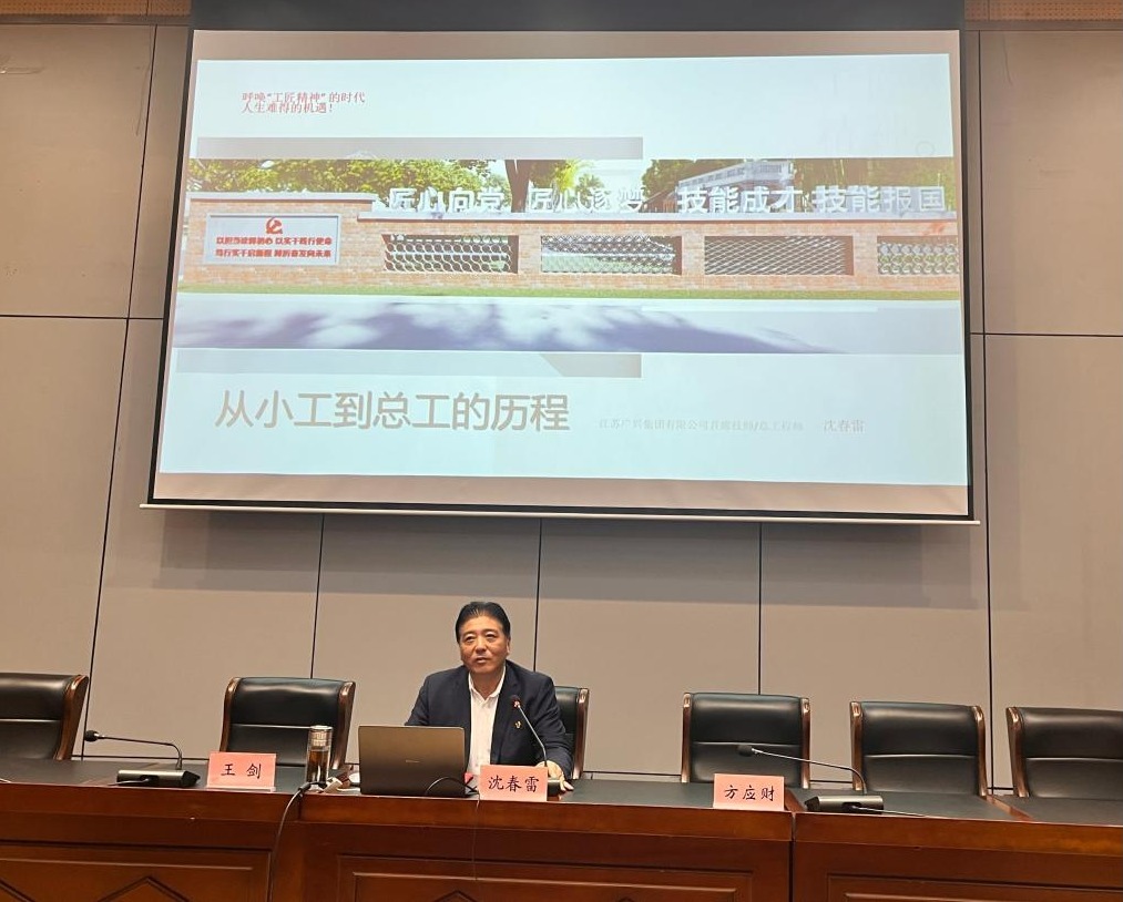 在研发楼报告厅开展“劳模工匠进校园”主题活动,特别邀请“中共二十大代表”“全国劳动模范”“全国技术能手”“江苏大工匠”——沈春雷,作“匠心向党 匠心逐梦 技能成才 技能报国”专题宣讲,用自身的奋斗故事诠释着劳模精神、劳动精神、工匠精神。2023级新生及2024届毕业生代表参加活动。