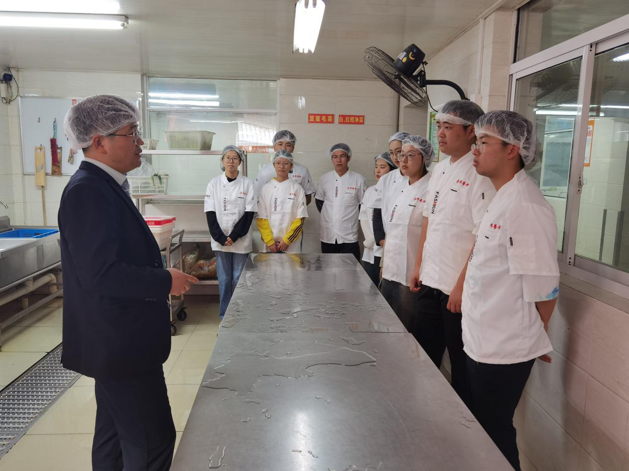 民以食为天,食以安为先。为切实做好学校食堂食品安全管理,搭建校园食品安全监督平台,加强食堂与学生之间的沟通交流,提升食堂服务质量,保障师生的身体健康,11月3日下午,后勤基建处组织学生代表“零距离”走进食堂后厨,实地参观食堂生产加工操作流程。
