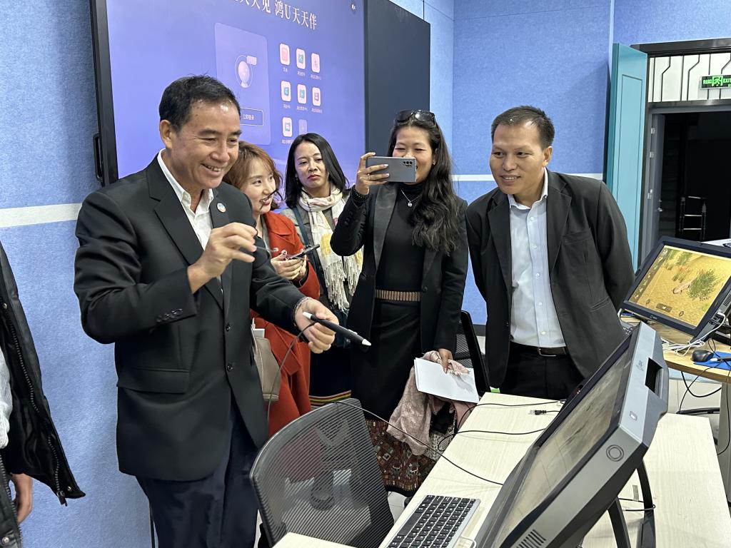 在虚拟仿真资源开发与课程建设方面取得的突出成效;农业物联网系主任蒋其友带领来宾参观了“数字农业”技能大赛现场,介绍了虚拟仿真实训平台的操作要求,并提出与老挝方面共同筹备“中老”数字农业技能竞赛,促进双方技术技能师资队伍与学生的交流与互动。