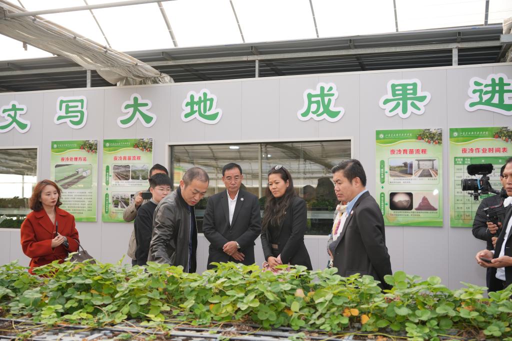 杰出校友华梦丽向国际友人介绍了校企合作方面的成果,尤其是高品质草莓相关技术的推广与应用。坡西·体达皖副校长一行在品尝特色草莓品种后赞不绝口,提出要引进色花堂