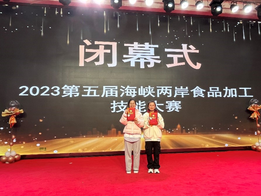 2023年11月28日,在海峡两岸食品加工技能大赛中,我院学子潘然、吴盼盼荣获二等奖,戴照琪、洪文龙两位老师荣获优秀指导老师称号。