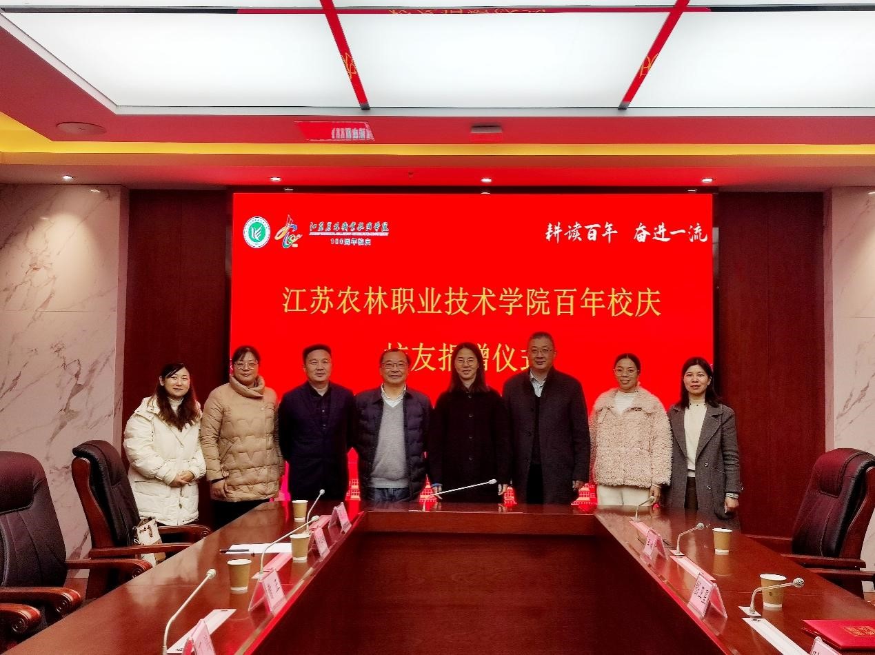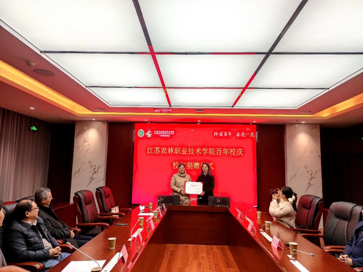 嵇卫星校友主要从事茶叶生产经营,她特制一款“春来早天目湖白茶”,为母校捐赠200盒,希望以此特殊的方式表达对母校的感恩之情。她介绍,此次为母校定制的茶叶采用她多年来的核心研发技术,选用天目湖白茶并以“春来早”命名,寓意着最早品尝春天的一抹茶味,以春天的盎然生机庆贺母校百年华诞。