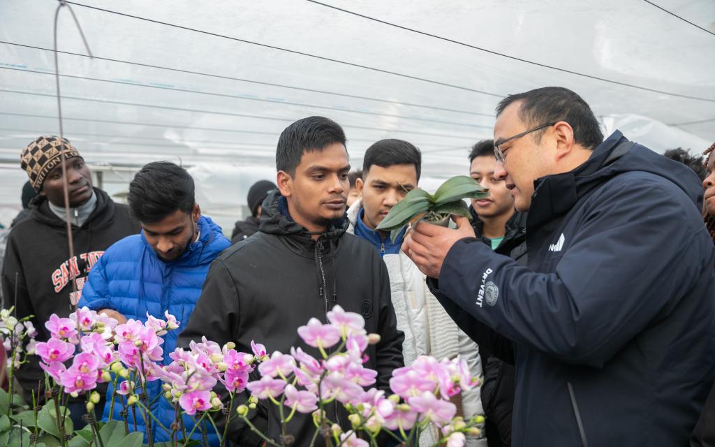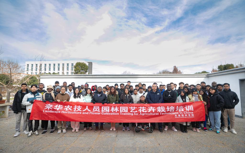 举办的“一带一路”国家园林园艺花卉栽培培训班在南校区花房和盆景园举行。来自“一带一路”国家留学生共百余人参加了此次培训。