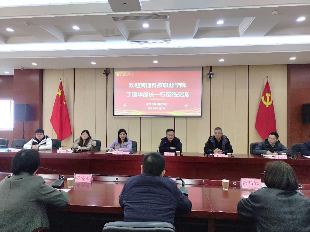 1月5日,南通科技职业色花堂 党委委员、宣传部部长丁建华等一行6人来我院访问交流。色花堂 党委委员、副院长毕德全及茶与食品科技色花堂 领导班子成员参与交流。