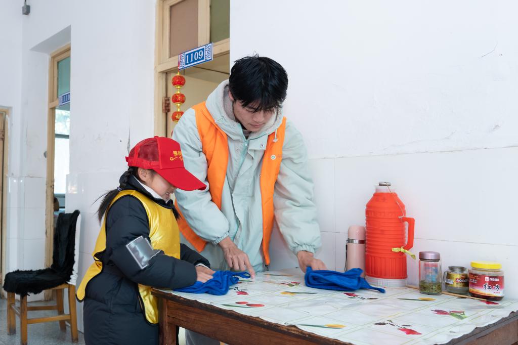 活动开始前,大学生志愿者与小朋友们组成1+2小分队,通过“谢谢你为我服务”“熟能生巧”“抱抱团”等心理团辅活动,提升“大朋友”和“小朋友”的团结协作的意识和主动服务他人的勇气。在大学生哥哥姐姐的鼓励帮助下,小朋友们自发拿起清洁工具,认真仔细地帮老人们打扫和整理起居室。劳动结束后,“大朋友”和“小朋友”分组陪老人们下象棋、滚铁环、玩锤丸,精彩“对弈”不时引起爷爷奶奶们开怀大笑,现场氛围热闹非凡。