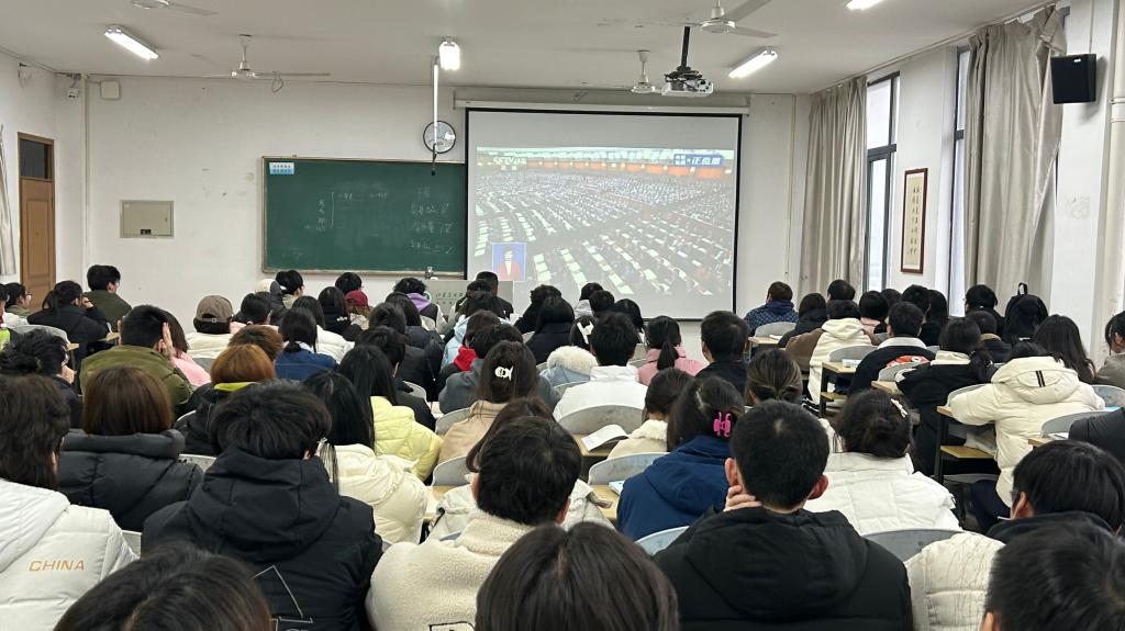 与时俱进同步学。茅山校区团委第一时间组织校区73个团支部收看全国两会开幕式直播,持续关注全国两会的进程,使大家了解两会动态,掌握两会内容,营造了浓厚的学习氛围。