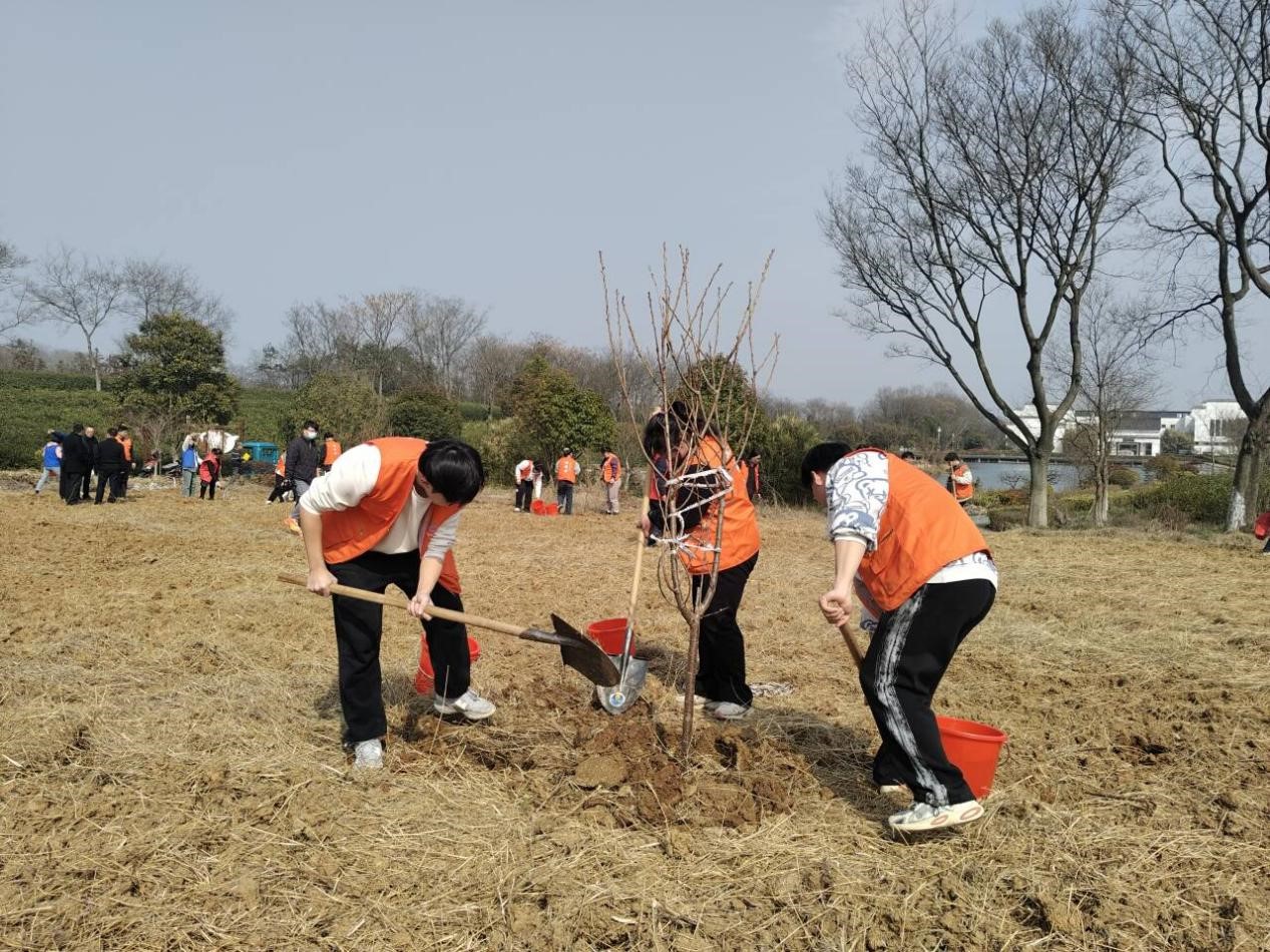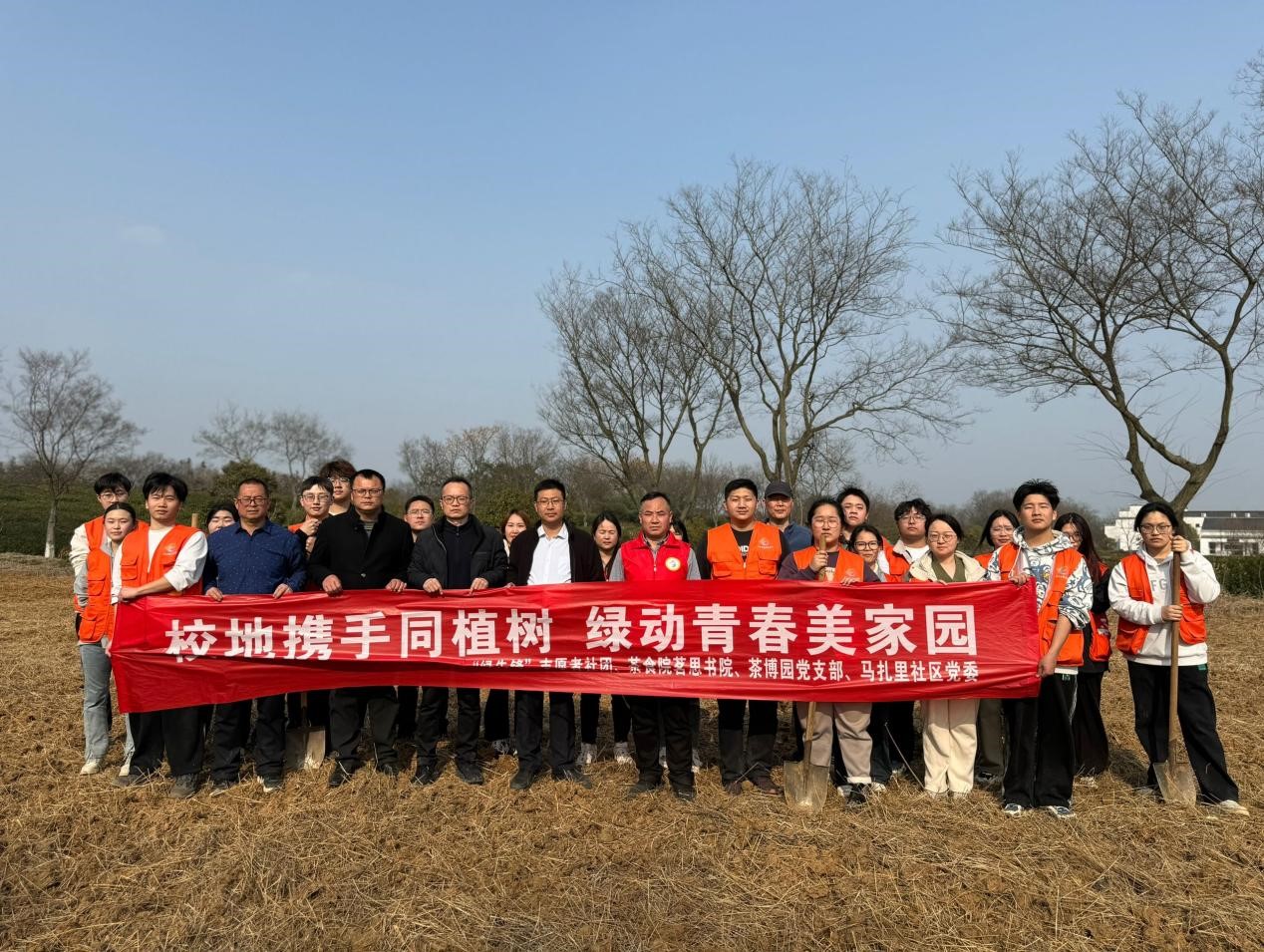学生党支部联合句容市马扎里社区党委、茶博园党支部于江苏茶博园开展“植树添新绿,共绘生态图”义务植树活动。